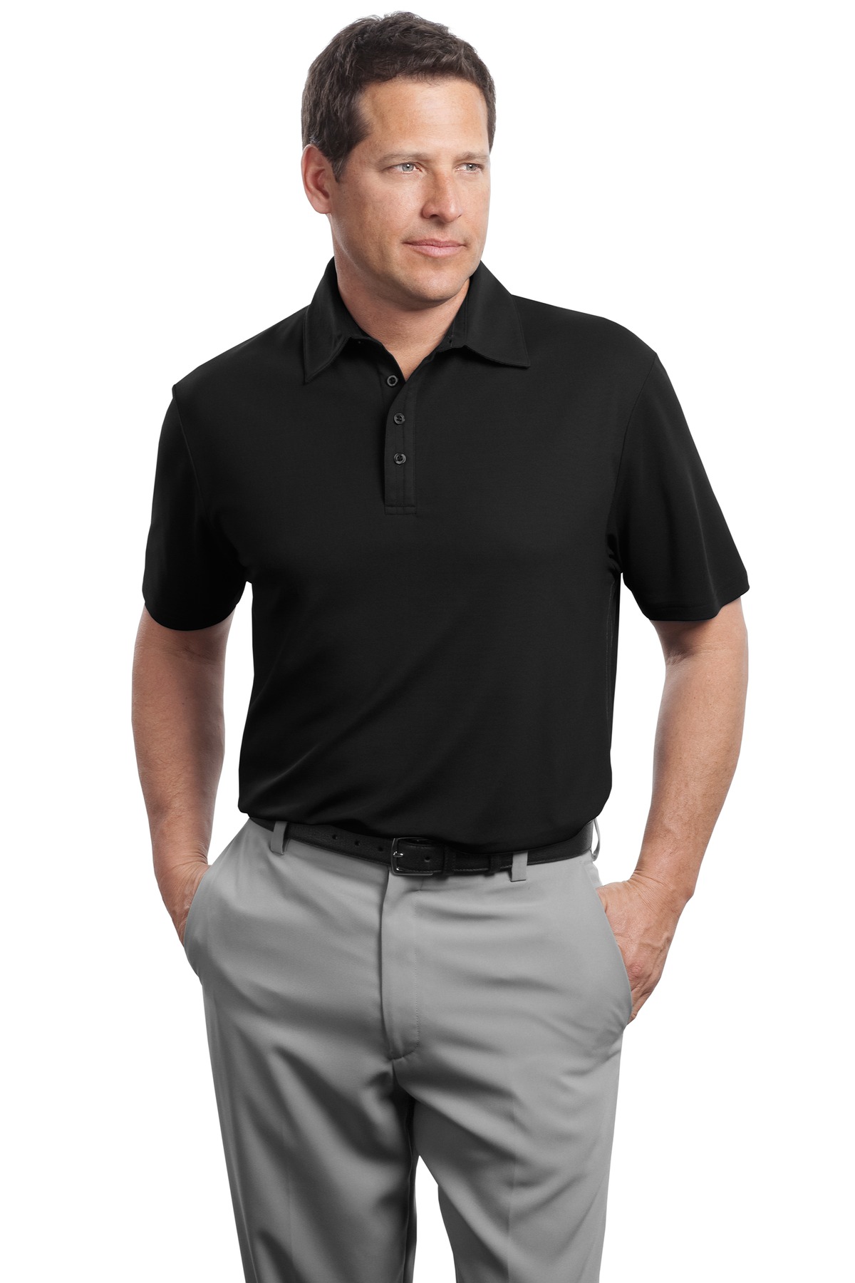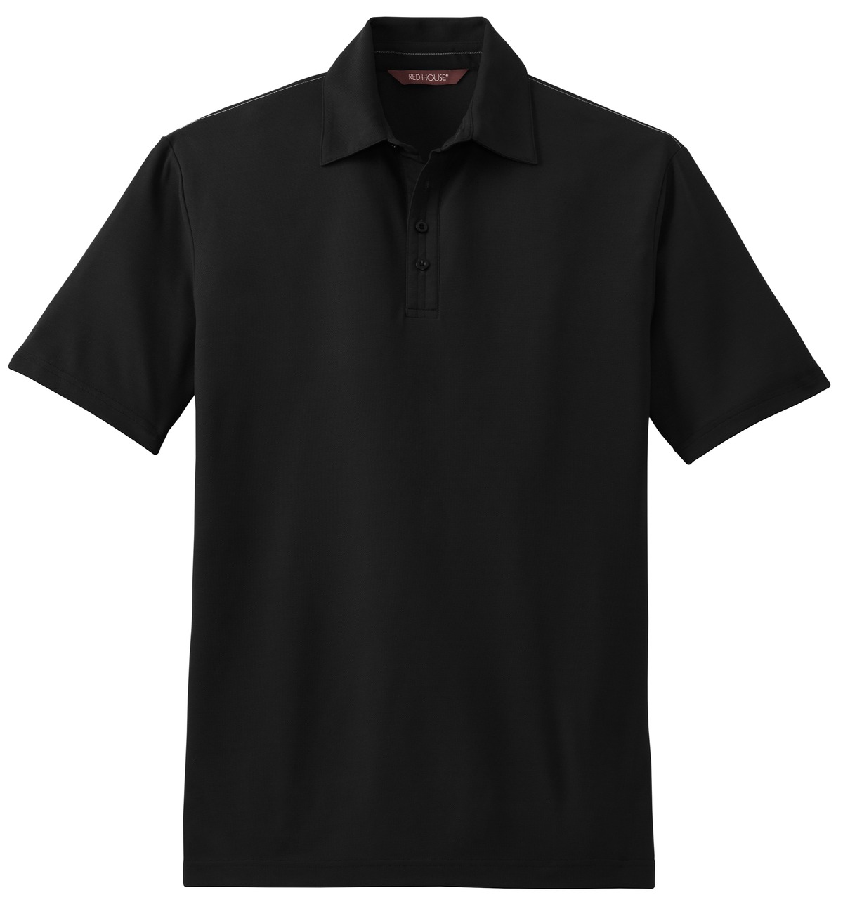 Balancing luxury with performance our polo manages moisture for an impeccable appearance and exceptional comfort. Contrast Clay Green chain stitching inside neck across shoulders and along side seams. White chain stitching on White. Contrast taping inside side vents. Self-fabric collar four-button placket open hem sleeves Red House engraved buttons and monogram on right sleeve. Made of 100% polyester.Due to the nature of 100% polyester performance fabrics special care must be taken throughout the printing process.