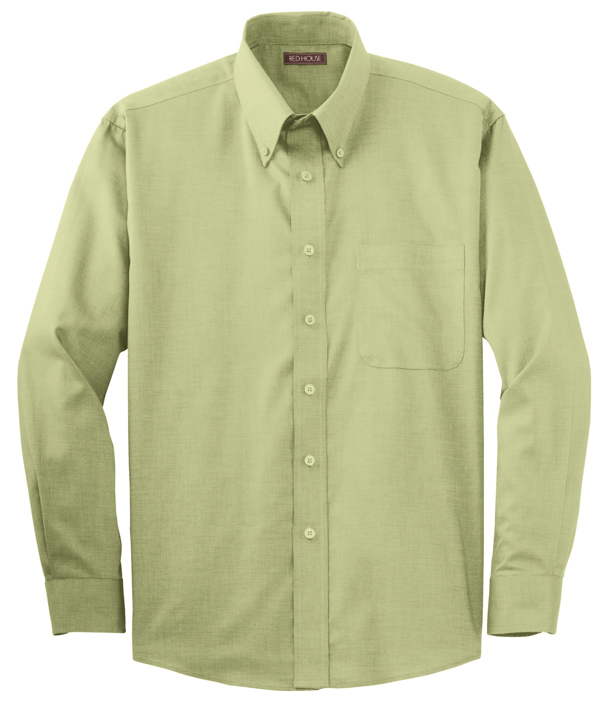 Distinctive and understated our nailhead dobby shirt stays crisp and wrinkle-free. Work-ready and crafted from 100% cotton our shirt achieves its distinct color thanks to a specialized dyeing process. Our non-iron finish adds to the enhanced drape and softness of this striking style. Button-down collar and left chest pocket. Pucker-free single-needle tailoring. Red House engraved buttons. Red House monogram on right sleeve placket.