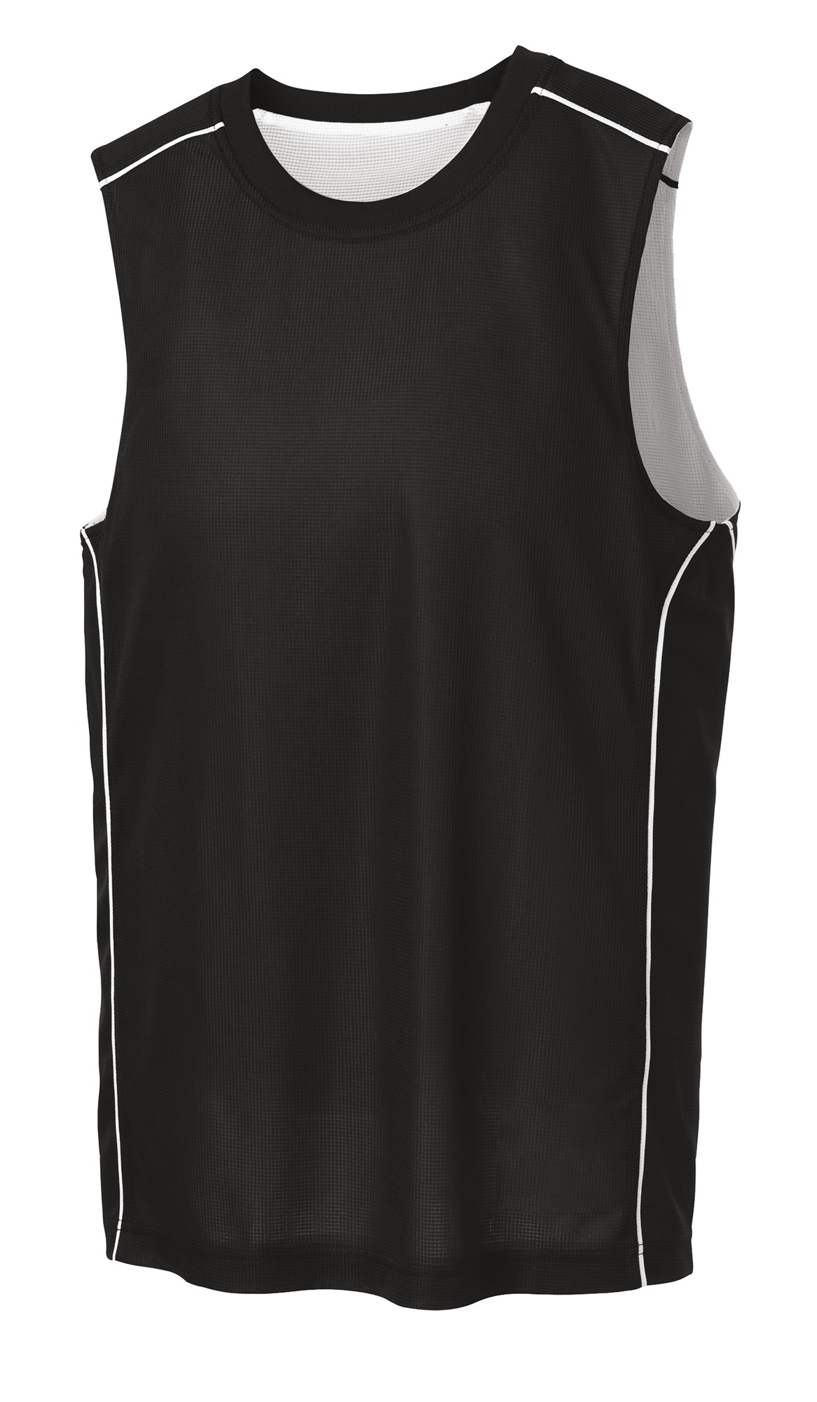 This reversible moisture-wicking essential has piping on shoulders and side panels. PosiCharge technology keeps colors vibrant. 3.2-ounce 100% polyester mesh with PosiCharge technology White mesh reverse with colored piping Rib knit neck Double-layer construction with open individually hemmed layers for easy decoration If applying sublimation special care must be taken throughout the process. Contact your decorator for more details.